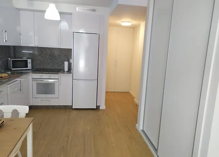 The apartment provides coffee and tea makers and an equipped kitchen with a refrigerator, an oven, and kitchenware. Vigo airport is located 15 km away, while Santa Tecla bus station is within arm's reach of the 33 m^2 apartment.